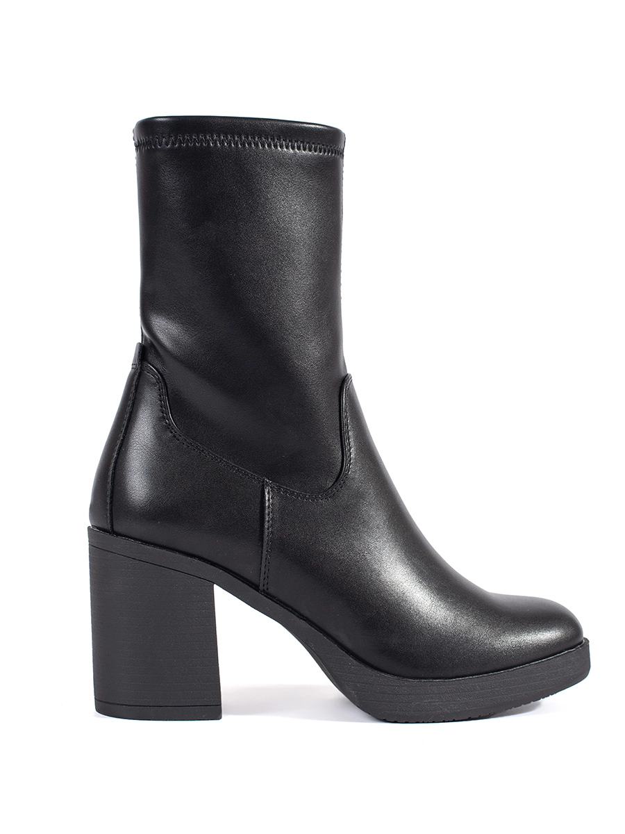 Designové černé dámské kotníkové boty na širokém podpatku