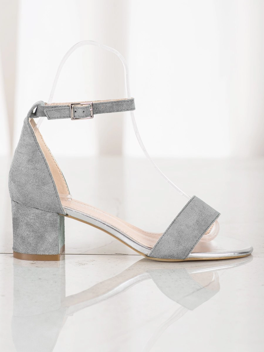 Exkluzívní dámské šedé lodičky na širokém podpatku
