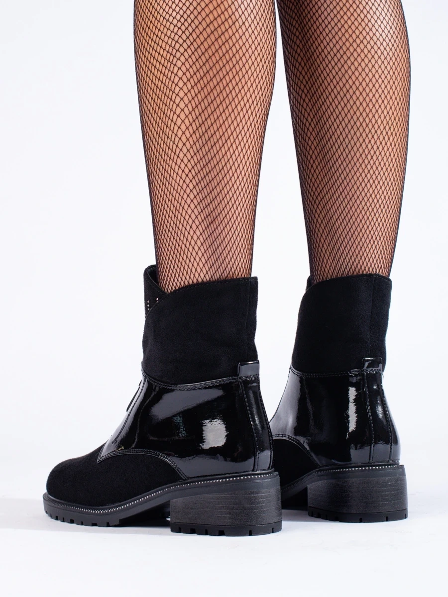 Luxusní kotníkové boty černé dámské na plochém podpatku
